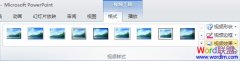 PowerPoint2010可以对视频应用阴影、映像、发光效果、柔化边缘、凹凸效果和三维旋转。 1、单击幻灯片上要添加效果的视频。 2、在视频工具下格式选项...