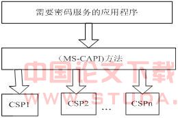 像JAVA中的JCA/JCE一样,MS-CAPI隐藏了密码算法本身的一些繁琐内容,而仅体现出功能上的要求。MS-CAPI同样使用了引擎和类的方式,但它有自己的术语描述方法。在MS-CAPI中,提供者类等同于我们常说的CSP(Cryptographic Service Providers)。不同的厂家提供的CSP在内部实现代码上可能不尽相同,但是在对外接口上按照微软的定义都是完全一样的。MS-CAPI提供一套通用的但需要CSP支持的外包接口,应用程序开发者通过使用这套接口来实现密码安全功能。CSP的内部内容对于应用程序的开发者来说是透明的。MS-CAPI自带默认的微软CSP,这个CSP也可被其它第三方的CSP所替代。