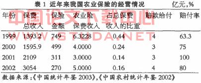 从表2资料可以看出我国农业保险净赔付率非常高,平均高达87.4%,再加上经营成本,保险公司基本是在亏损经营,由此,农业保险经营主体逐渐减少,农业保险的有效供给不足。目前,国内开办农业保险并有一定规模的,只有人民保险公司、中华联合和2004年3月成立的上海安信农业保险公司,其他股份制保险公司基本未予涉及。
